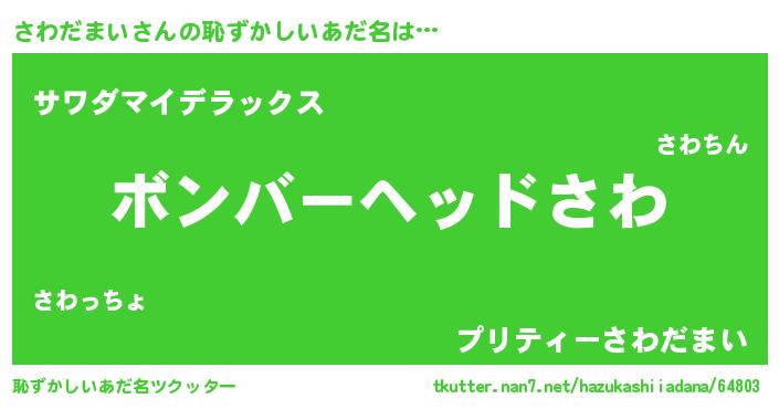 | 意味不明あだ名 | 『住所不定無職さわだまい(1歳)』 |