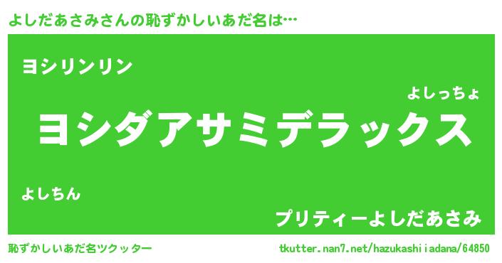 | 肩書あだ名 | 『よしだあさみ教官』『よしだあさみ閣下』 |