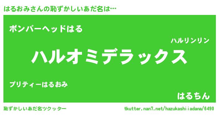 | 男性向けラノベタイトル風あだ名 | 『Re:はるおみから始める異世界生活』 |