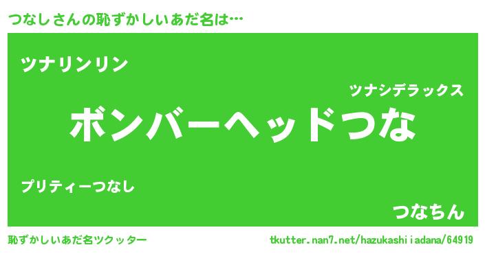 | 意味不明あだ名 | 『眠気覚ましガムつなし味』『自称つなし』 |