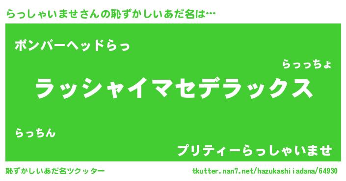 | ヒーロー風カッコイイあだ名 | 『超時空戦士ラッシャイマセ』 |