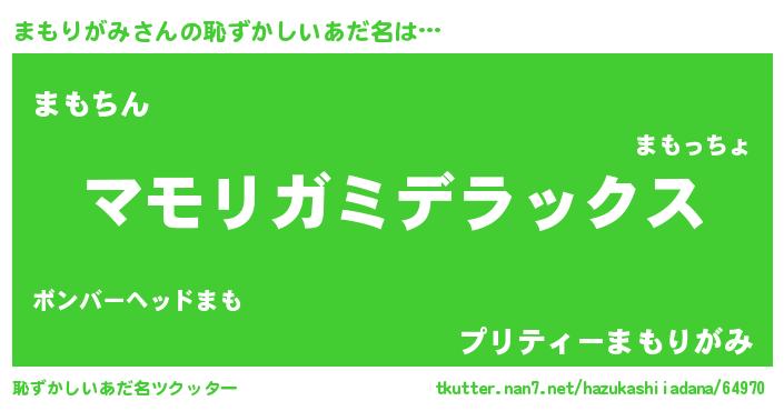 | 意味不明あだ名 | 『自称まもりがみ』『永久保存まもりがみ』 |