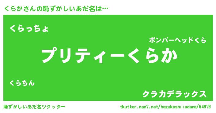 | 男性向けラノベタイトル風あだ名 | 『くらかの憂鬱』 |