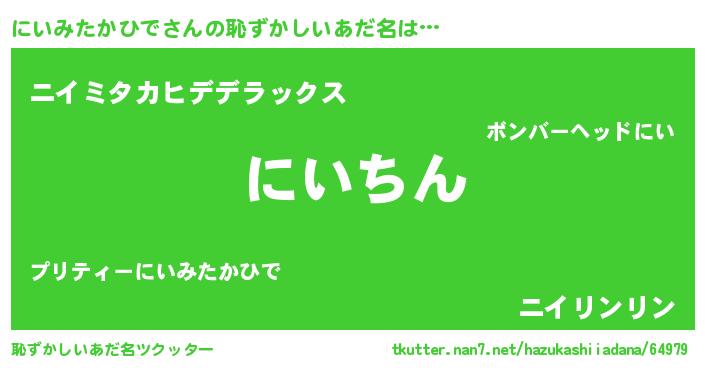 | 意味不明あだ名 | 『永久保存にいみたかひで』 |