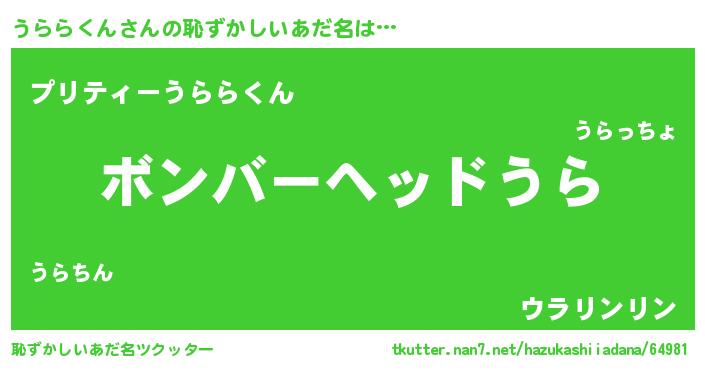| 意味不明あだ名 | 『眠気覚ましガムうららくん味』 |