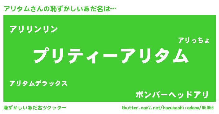| 男性向けラノベタイトル風あだ名 | 『アリタムの憂鬱』 |
