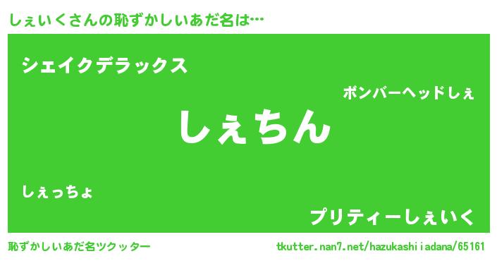 | 意味不明あだ名 | 『永久保存しぇいく』『自称しぇいく』 |