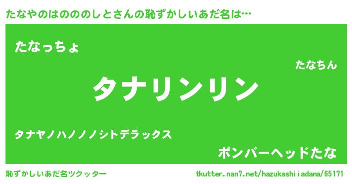 | 意味不明あだ名 | 『とにかく怪しいたなやのはのののしと』 |
