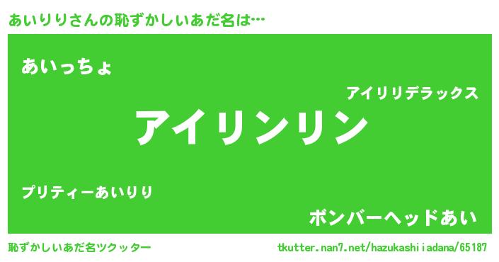 | 意味不明あだ名 | 『とにかく怪しいあいりり』 |