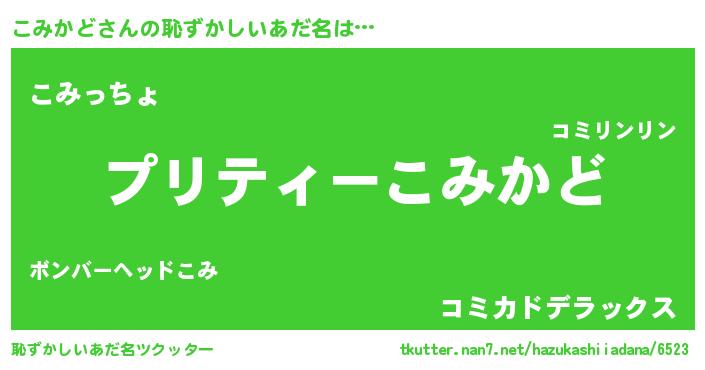 | ヘコむあだ名 | 『こみっふぃ~』『つくし』 |