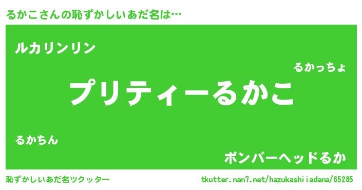 | ヘコむあだ名 | 『るかもー』『るかを』『なまこ酢』 |
