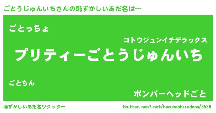 | 男性向けラノベタイトル風あだ名 | 『冴えないごとうじゅんいちの育てかた』 |