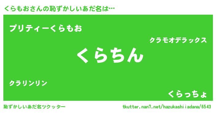 | 男性向けラノベタイトル風あだ名 | 『くらもおという概念が存在しない退屈な世界 』 |
