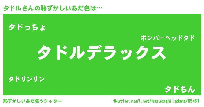 | ヒーロー風カッコイイあだ名 | 『最強戦士タドル』『仮面タドダー』 |