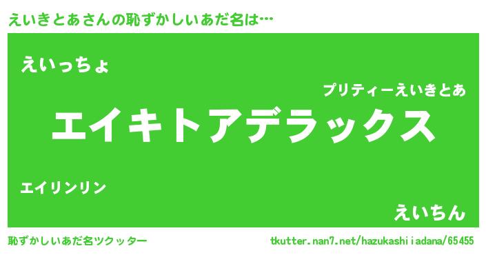 | 意味不明あだ名 | 『自称えいきとあ』『永久保存えいきとあ』 |
