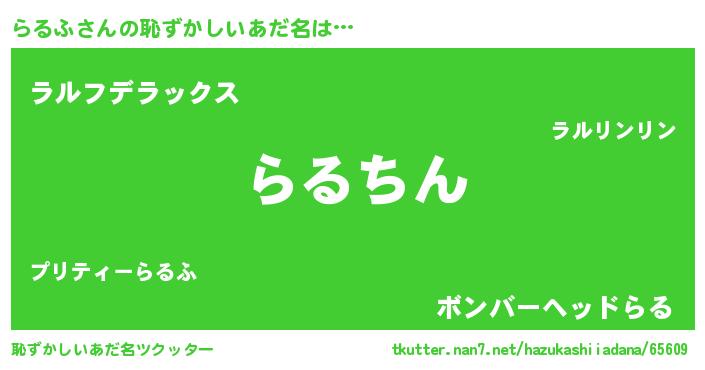 | 意味不明あだ名 | 『永久保存らるふ』『自称らるふ』 |