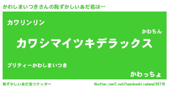 | 男性向けラノベタイトル風あだ名 | 『この素晴らしい世界にかわしまいつきを!』 |