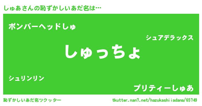 | 意味不明あだ名 | 『しゅあフォーエバー』『ペロリンしゅあ』 |