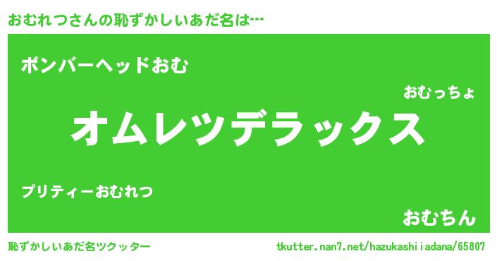 | 意味不明あだ名 | 『住所不定無職おむれつ(79歳)』 |