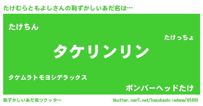 | 男性向けラノベタイトル風あだ名 | 『たけむらともよしの嫁は女の子じゃないと思った?』 |