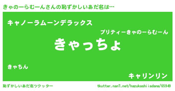 | 女子向けラノベタイトル風あだ名 | 『きゃのーらむーんの婚約者』 |