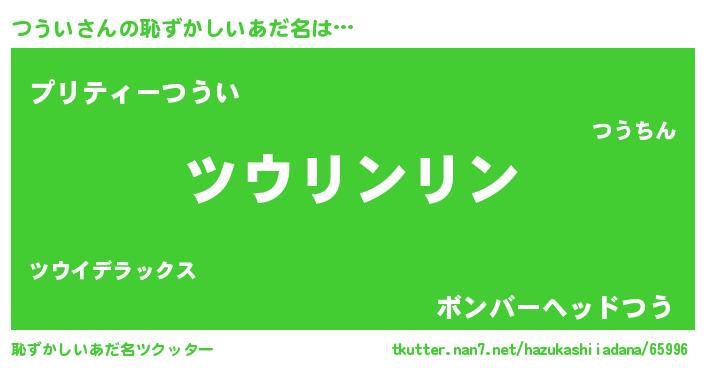 | 女子向けラノベタイトル風あだ名 | 『つういは平凡を望む』『つうい恋絵巻』 |