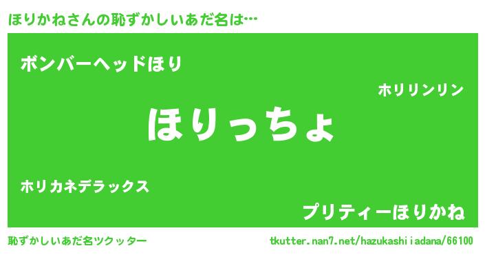 | 男性向けラノベタイトル風あだ名 | 『ほりかね~年齢イコール彼女いない歴の魔法使い~』 |
