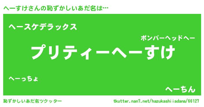 | ヒーロー風カッコイイあだ名 | 『スーパーヘースケ』『究極戦士ヘースケ』 |