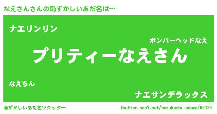 | 欧米人風あだ名 | 『マイケルなえさん』『ウサインなえさん』 |