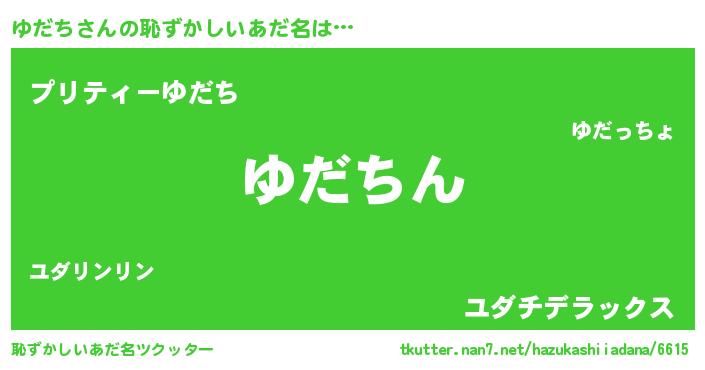 | 意味不明あだ名 | 『永久保存ゆだち』『ペロリンゆだち』 |