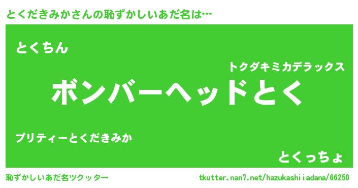 | ヘコむあだ名 | 『とくだきみか(苦笑)』『つくし』 |