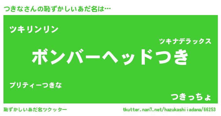 | ヒーロー風カッコイイあだ名 | 『仮面ツキダー』『慈愛の使者つきな』 |