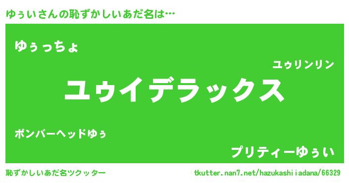 | 意味不明あだ名 | 『なめこ科ゆぅい属』『自称ゆぅい』 |