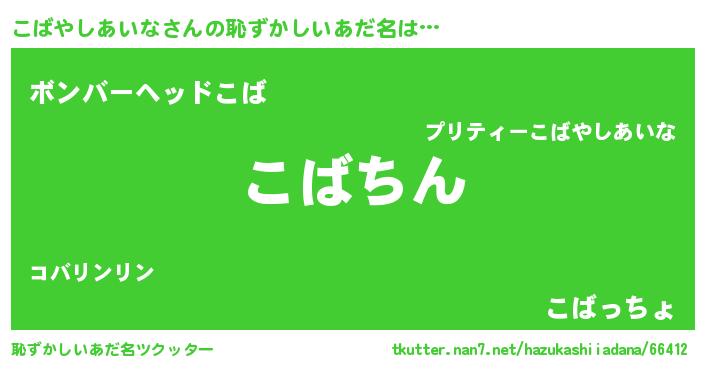 | ヒーロー風カッコイイあだ名 | 『ネオコバヤシアイナ』『仮面コバダー』 |