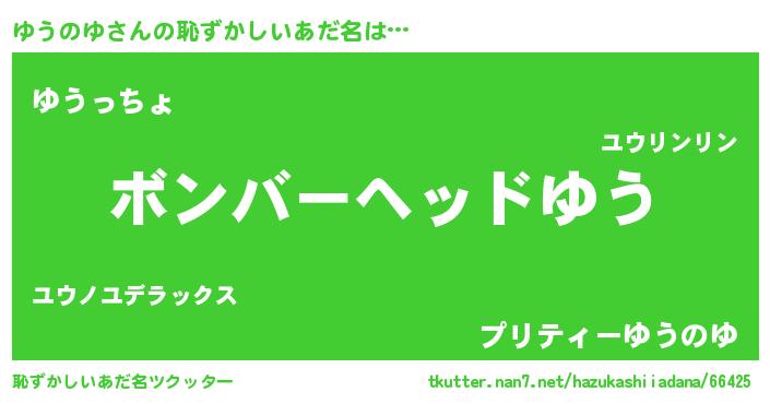 | ヒーロー風カッコイイあだ名 | 『天空の使者ゆうのゆ』『仮面ユウダー』 |