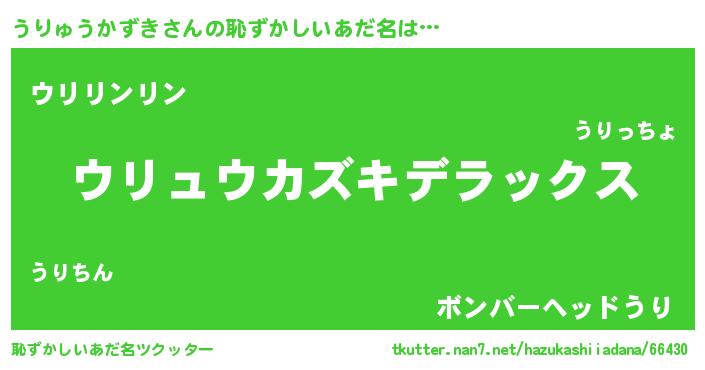 | 意味不明あだ名 | 『自称うりゅうかずき』 |