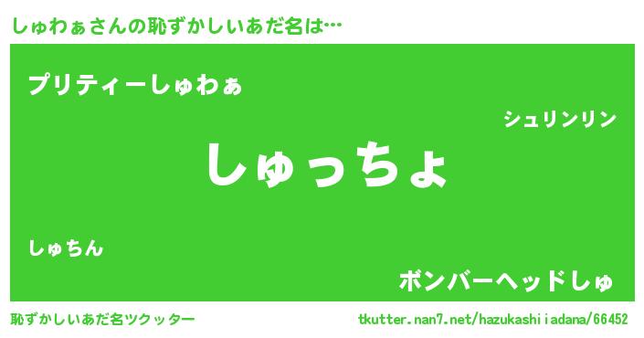 | ヒーロー風カッコイイあだ名 | 『ウルトラしゅわぁマン』『黄金騎士シュ』 |