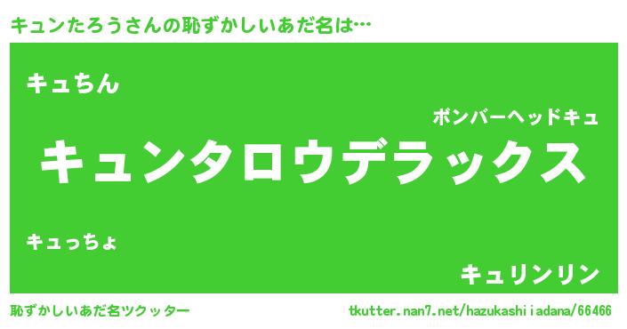 | ヘコむあだ名 | 『キュンたろう(笑)』『キュっ子』 |
