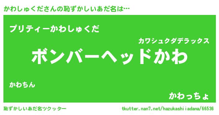 | ヒーロー風カッコイイあだ名 | 『仮面カワダー』『スーパーカワシュクダ』 |