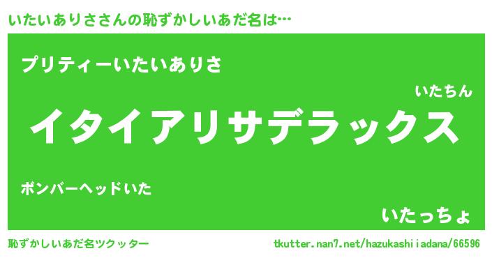 | 男性向けラノベタイトル風あだ名 | 『緋弾のイタイアリサ』 |