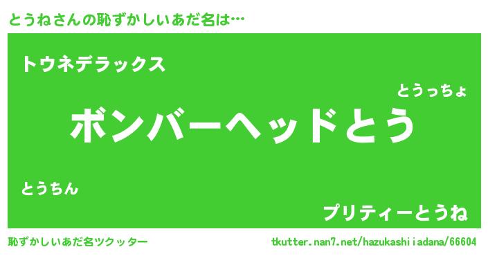 | 意味不明あだ名 | 『眠気覚ましガムとうね味』『自称とうね』 |