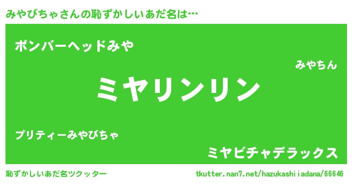 | ヒーロー風カッコイイあだ名 | 『黄金騎士ミヤ』『愛の使者みやびちゃ』 |