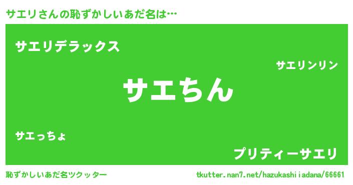 | 意味不明あだ名 | 『永久保存サエリ』『自称サエリ』 |