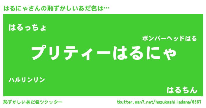 | 意味不明あだ名 | 『ペロリンはるにゃ』『永久保存はるにゃ』 |