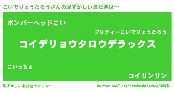 | 男性向けラノベタイトル風あだ名 | 『Re:こいでりょうたろうから始める異世界生活』 |