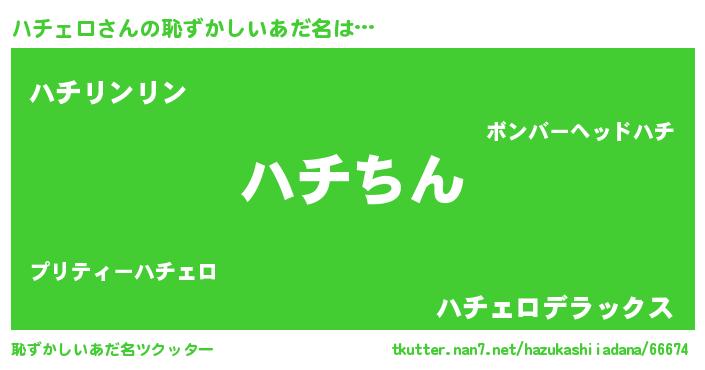 | ヒーロー風カッコイイあだ名 | 『ネオハチェロ』『魔戒騎士ハチ』 |