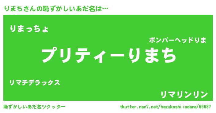| ヒーロー風カッコイイあだ名 | 『スーパーリマチ』『ウルトラりまちマン』 |