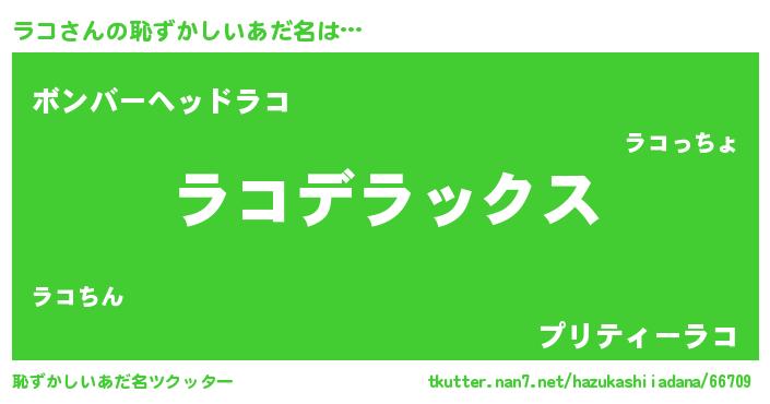 | ヒーロー風カッコイイあだ名 | 『超時空戦士ラコ』『正義の使者ラコ』 |
