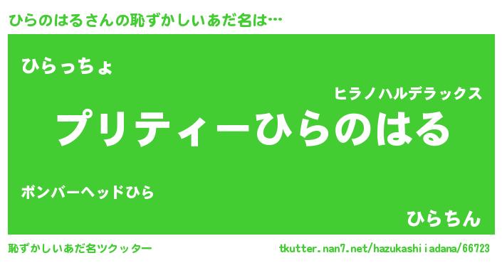 | 意味不明あだ名 | 『住所不定無職ひらのはる(5歳)』 |