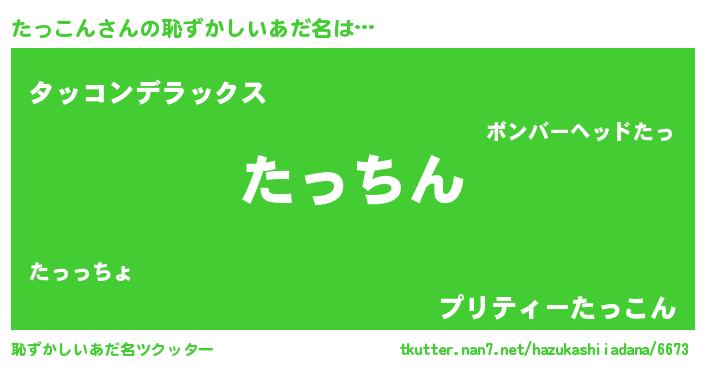 | ヘコむあだ名 | 『たっこん(遠い目)』『たっもー』 |